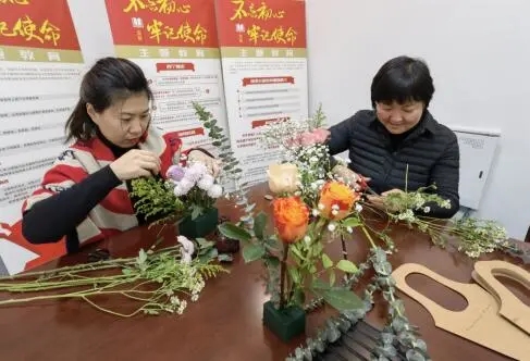 活動開始,大家興致盎然,經(jīng)過半小時的時間,一支支玫瑰、滿天星、小雛菊,經(jīng)過大家的巧手修剪和設計,變成一個個錯落有致、色彩鮮艷的插畫作品,活動現(xiàn)場花香四溢,大家相互分享著自己動手插花的樂趣與感悟,氣氛美麗而溫馨。