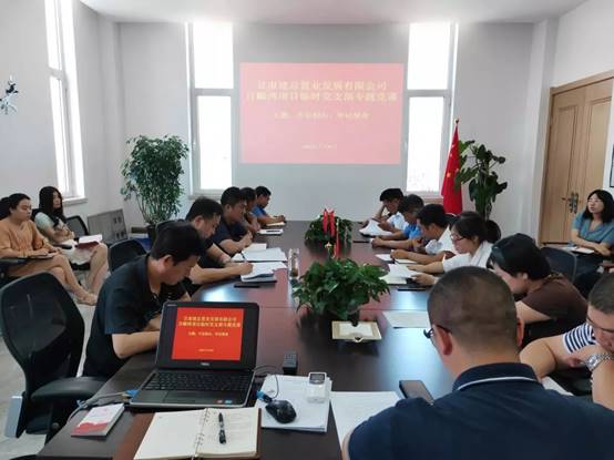 為進(jìn)一步開展好“不忘初心、牢記使命”主題教育,7月30日下午,公司工會(huì)主席、副總經(jīng)理、百酈灣項(xiàng)目臨時(shí)黨支部書記石磊在黨員活動(dòng)室為百酈灣項(xiàng)目臨時(shí)支部全體黨員、百酈灣項(xiàng)目開發(fā)公司全體員工講專題黨課。